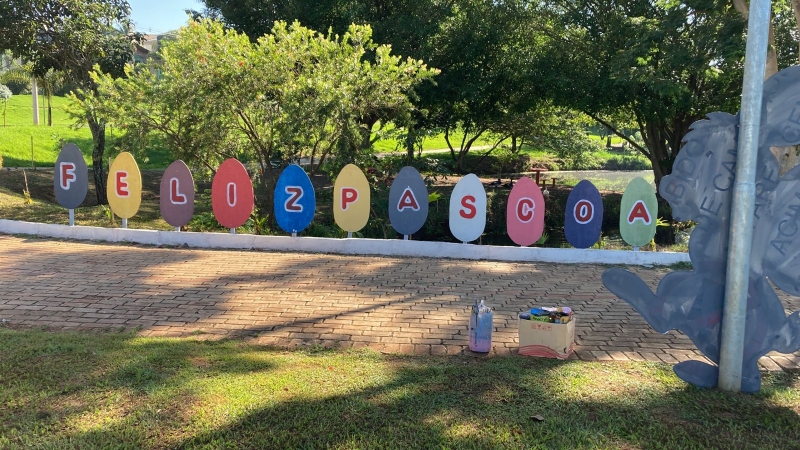 O secretário de Desenvolvimento Econômico, Tiago Moreira e o servidor Reinaldo Gaiquer, do setor de Turismo, idealizadores do “Cantinho da Páscoa”, pensaram nesse espaço como pontos instagramáveis, para encantar visitantes e moradores no mês de abril. As árvores do local receberam luzes, sendo também instalado um boneco em formato de coelho gigante e mais bonecos temáticos espalhados pelo parque. A iniciativa também contou com o apoio do COMTUR (Conselho Municipal de Ourinhos).
